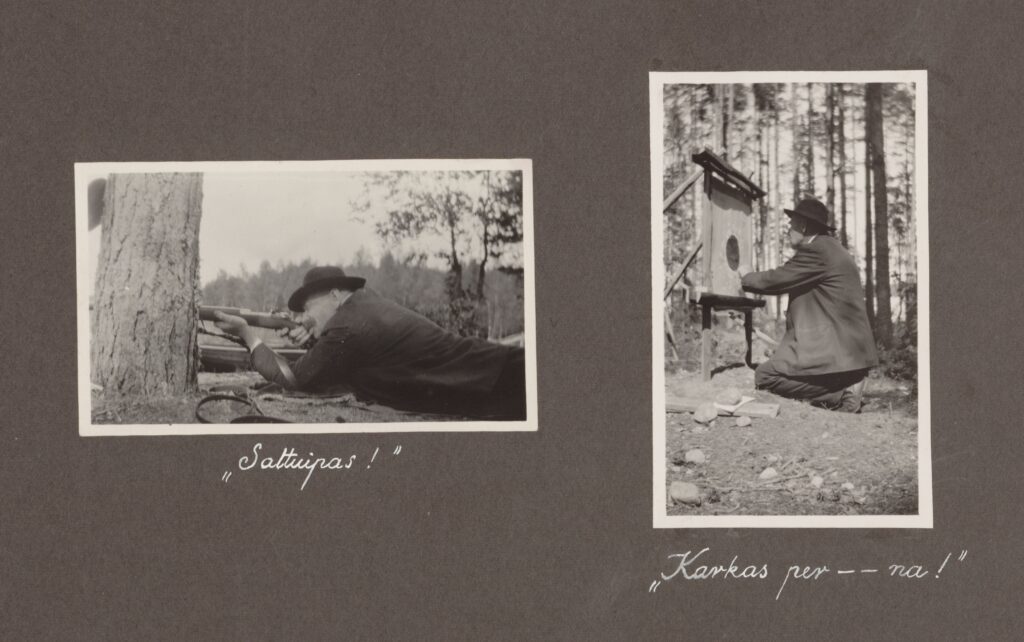 Svinhufvud ampumaharrastuksen parissa. Erkki Räikkönen 1929. Jorma ja Sirkka Svinhufvudin kotialbumit.